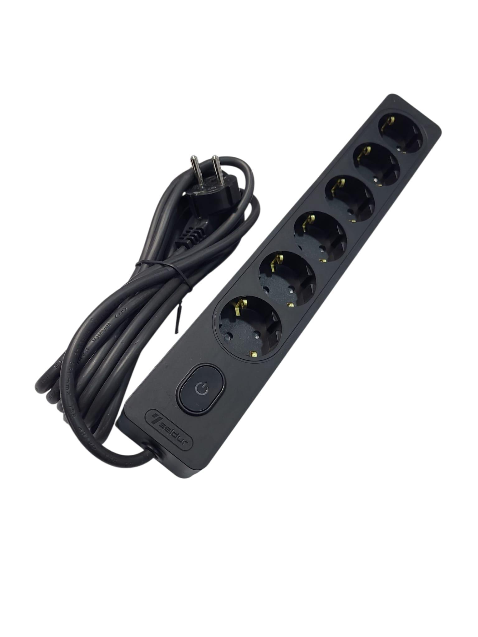 Seldur Altılı Anahtarlı Topraklı Grup Priz Siyah 3 mt ÇK