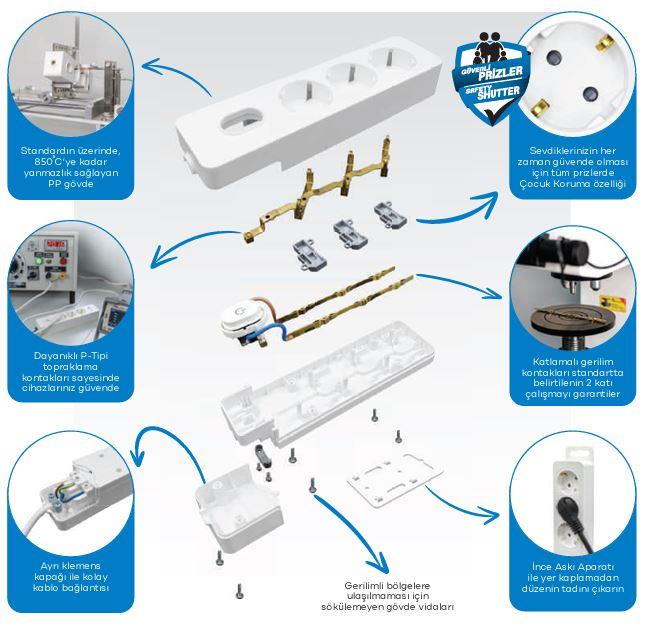 Seldur Altılı Anahtarlı Topraklı Grup Priz Klemensli ÇK