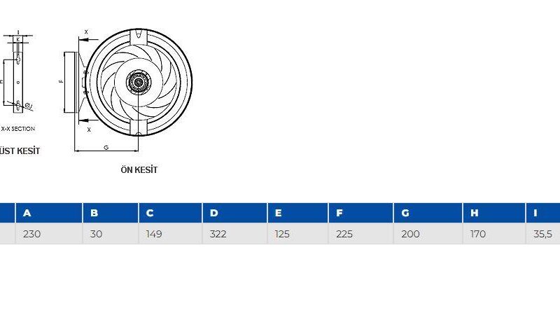 Pervanesi geriye eğimli şekilde olması ile yüksek basınçlı hava akışı sağlamaktadır.