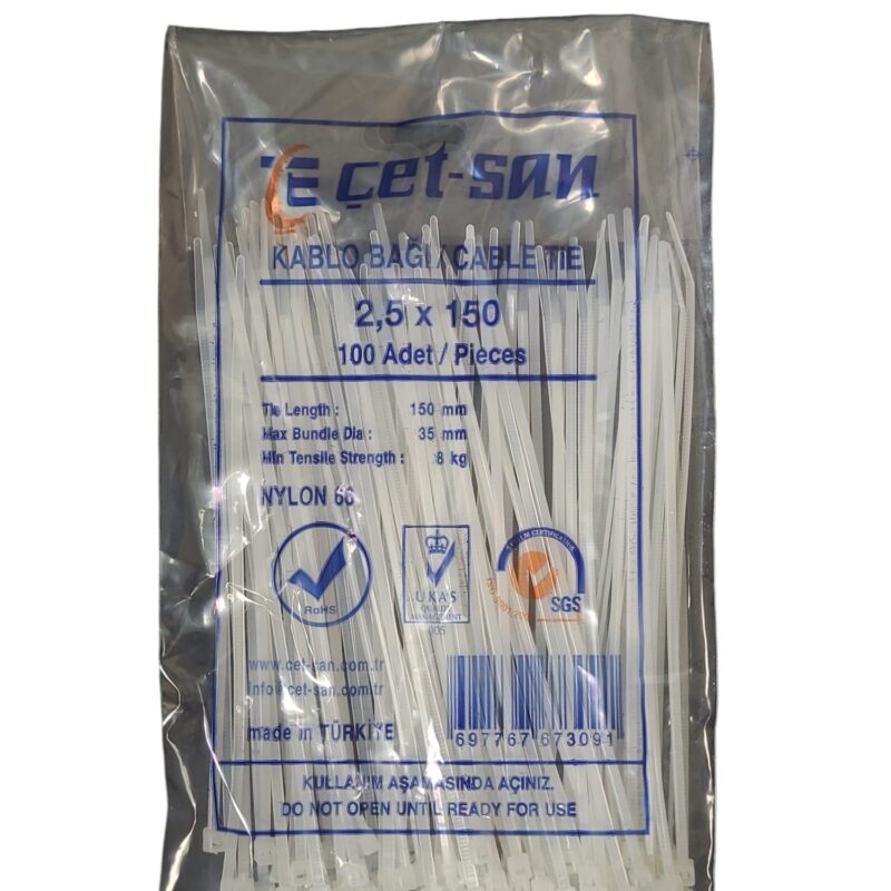 Çetsan 2,5×150 Kablo Bağı 100 adet Beyaz