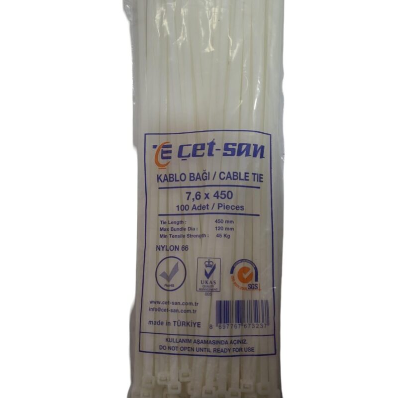 Çetsan 7,6×450 Kablo Bağı 100 adet Beyaz