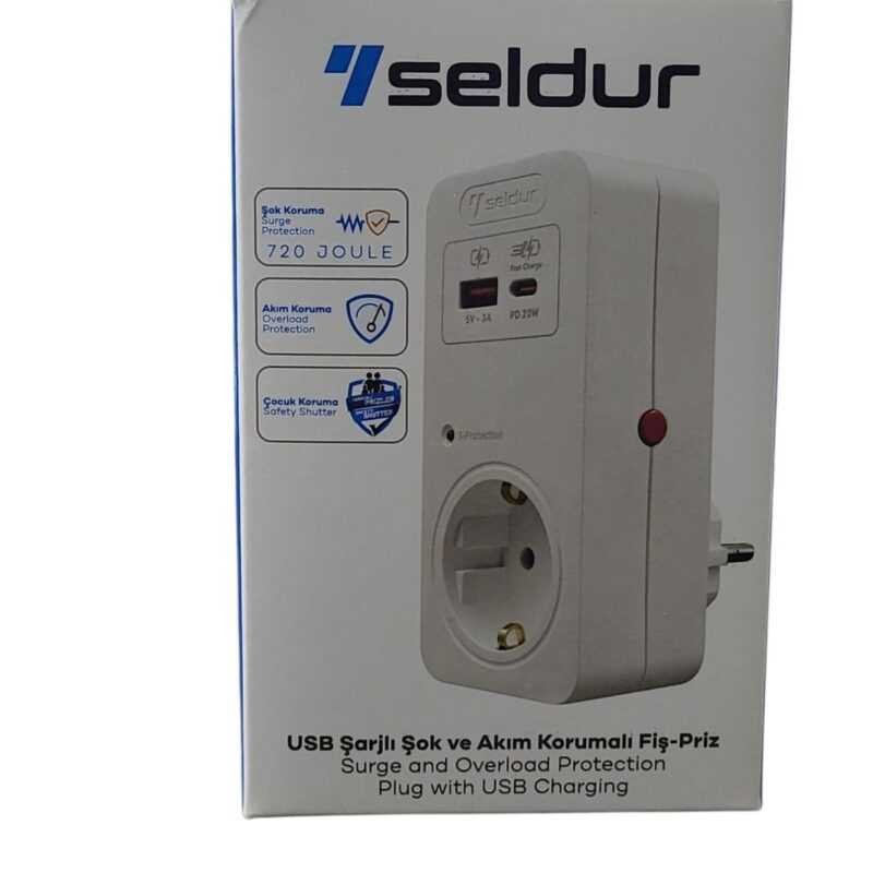 Seldur USB Hızlı Şarjlı Şok ve Akım Korumalı Fiş Priz